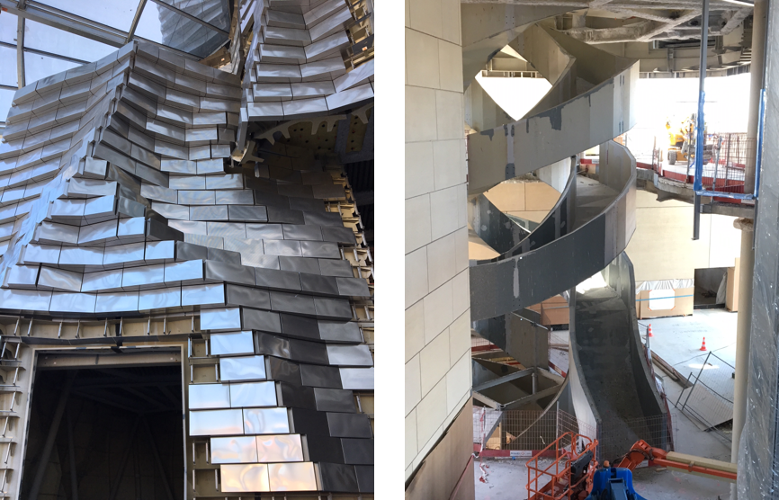 Franck GEHRY est l’architecte de cet ouvrage de tous les excès : magnificence des matériaux, excentricité des formes – 11 000 boites inox toutes différentes qui couvrent la façade – et soin apporté aux détails. On retrouve la même originalité, la même qualité de construction, et la même démesure qu’à la fondation Louis Vuitton au bois de Boulogne.